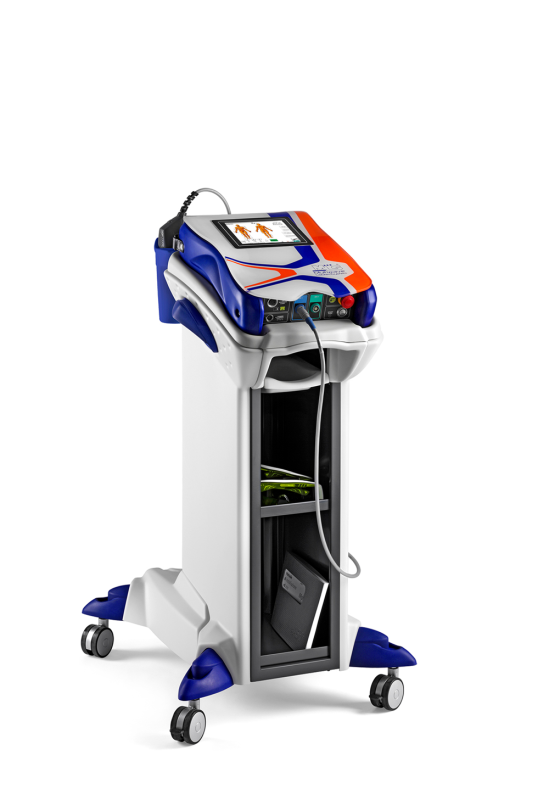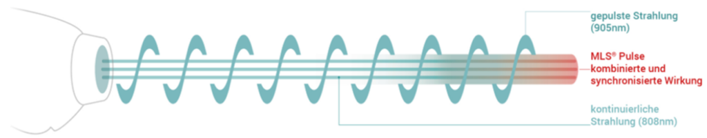 Der MLS® (Multiwave Locked System) basiert auf zwei kombinierten und synchronisierten Emissionen: Eine ist, bezogen auf die Leistung, ähnlich der LLLT (Low Level Laser Therapy), während die Andere die typischen Merkmale der High Power hat.