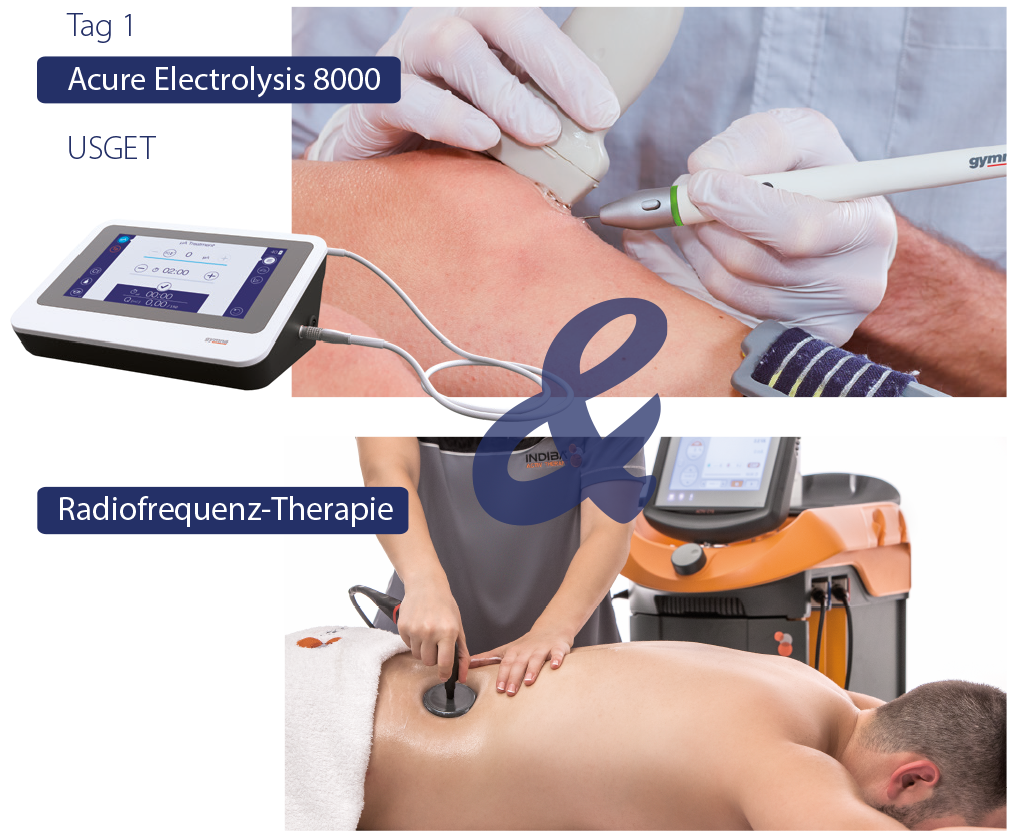 Die Elektrolysetherapie ist eine Technik, die besonders bei Sehnen- und Muskelverletzungen eingesetzt wird. Das Ziel ist es, im betro enen Gewebe eine Reaktion unter Zuhilfenahme bildgebender Maßnahmen zu erreichen. Aus diesem Grunde emp ehlt die Europäische Gesellschaft für Sporttraumatologie, Kniechirurgie und Arthroskopie die Verwendung von Ultraschallgeräten bei der Elektrolysetherapie. Die aktuellen klinischen Beweise unterstützen die Anwendung der Elektrolysetherapie vor allem im Muskel- und Sehnengewebe, allerdings könnten, wie bei jeder neuen Behandlungsmethode, laufende klinische Untersuchungen auch weitere Anwendungen aufzeigen.