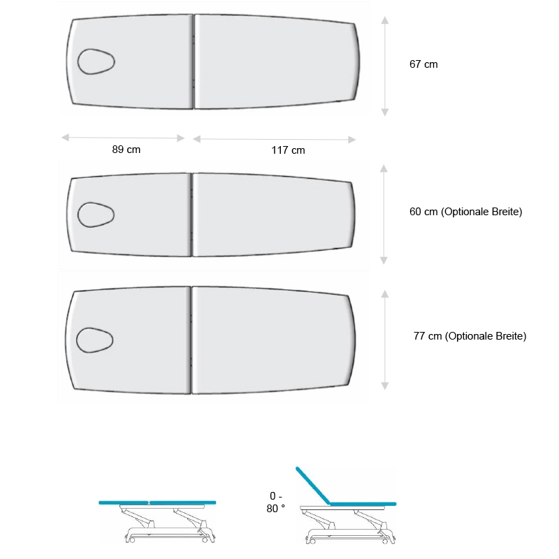 - Große Beinfreiheit unterhalb des Kopfteils bei Behandlung in sitzender Position