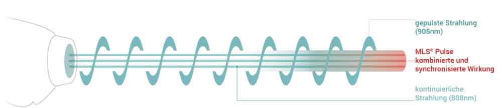 - MLS®-Modulation CPW und FPW (synchronisierte Strahlung als Continuous Pulsed Waves und Frequenced Pulsed Waves)