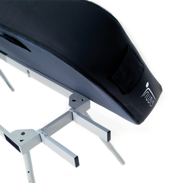 Sie kann sowohl am Fuß- als auch am Kopfende der Nubis-Liegen angebracht werden und unterstützt den jeweiligen Bereich zusätzlich für die jeweilige Behandlung.