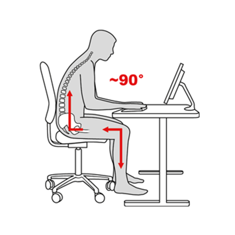 Die katastrophale Körperhaltung, die durch herkömmliche Sitzmöbel unvermeidlich entsteht, führt zu einer Dehnung und Verspannung der Rückenmuskulatur und somit zu Schmerzen. Die Wirbelgelenke der Wirbelsäule sind geöffnet, was den Druck auf die Bandscheiben um bis zu 30 Prozent erhöht. Auch eine Rückenlehne kann in diesem Fall nicht helfen, da durch den 90-Grad-Winkel in der Hüfte verhindert wird, dass das Becken nach vorne in seine natürliche Haltung gebracht wird.